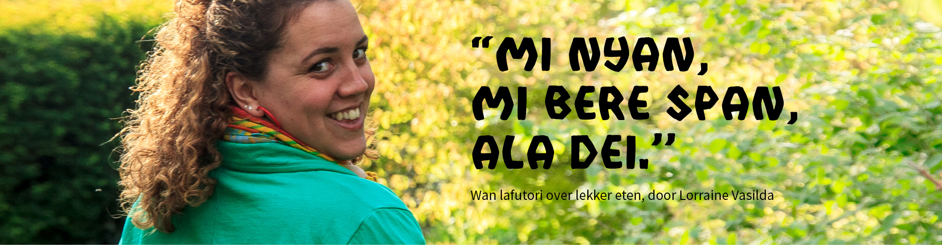 Lorraine Vasilda (Amsterdam, ’87) houdt van eten. Lekker eten! Ook houdt ze van schrijven, zingen, kickboksen en koken. Ze woont met haar zoontje in Lelystad. Ze is allround kapster van European en blackhair. In de volgende Gesontu Sranang editie deelt ze een nieuwe tori. Mis het niet!