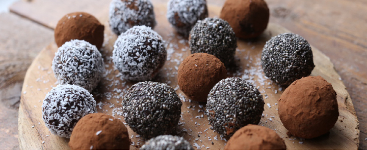 Ik wil gezond snacken, maar wil absoluut niet lang in de keuken staan daarvoor. Jij ook niet? Deze cacao energy balls zijn zo lekker, gezond, betaalbaar, en eenvoudig te maken! Ze zijn super handig om mee te nemen. En in een glazen pot, staan ze ook nog eens prachtig in je koelkast. Je kan er alle kanten mee op. Varieer met die jij het lekkerst vindt. De ballen geven je energie door de gezonde ingrediënten. Ze zijn rauw, geraffineerd suikervrij en ze zijn verpakt met mineralen en proteïne. Dus de perfecte optie als gezonde snack. Vandaag rol ik ze in gedroogde kokossnippers, chiazaad en rauwe cacaopoeder.